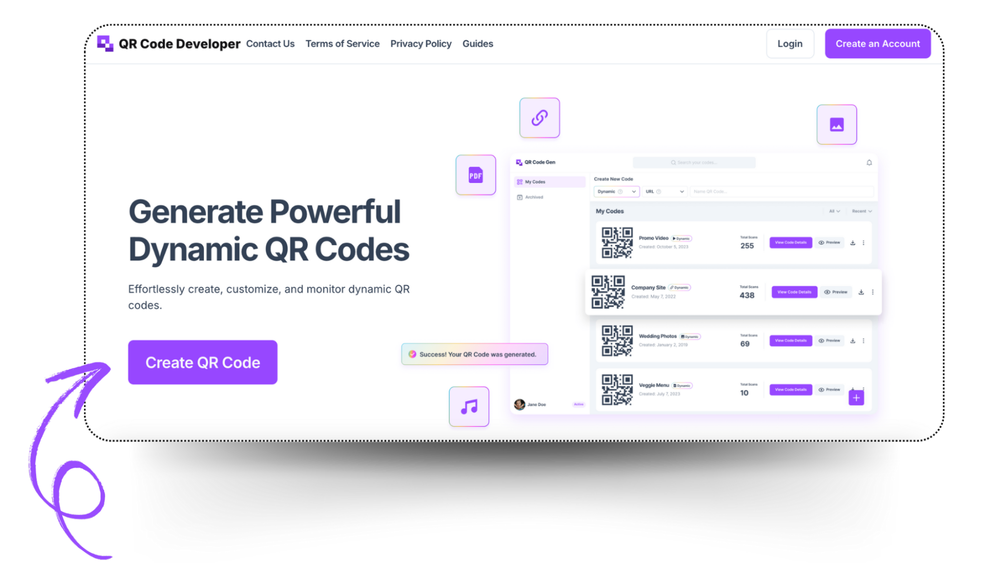 Étape 1 : Rendez-vous sur QR Code Developer et cliquez sur “Créer un QR code”.