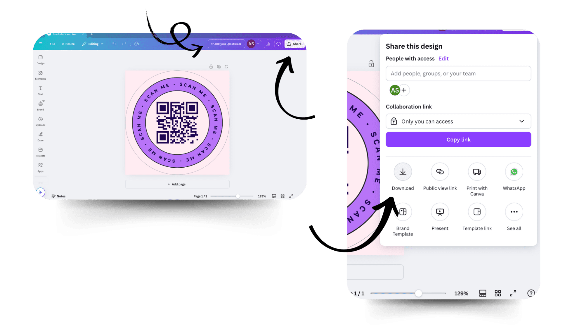 Maintenant que votre code QR est prêt, passez à la création de l'autocollant. La première étape consiste à choisir l'outil approprié. Canva est un outil de conception facile à utiliser qui propose un large choix de modèles et diverses options d'édition. Créons un autocollant de code QR sur Canva :