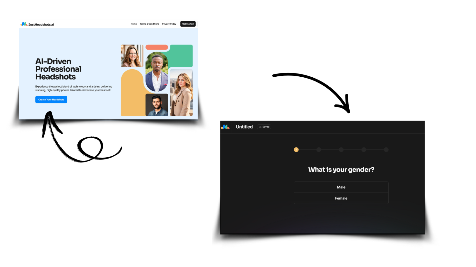 Látogass el a JustHeadshots AI oldalra, és kattints a Create Your Headshots gombra.